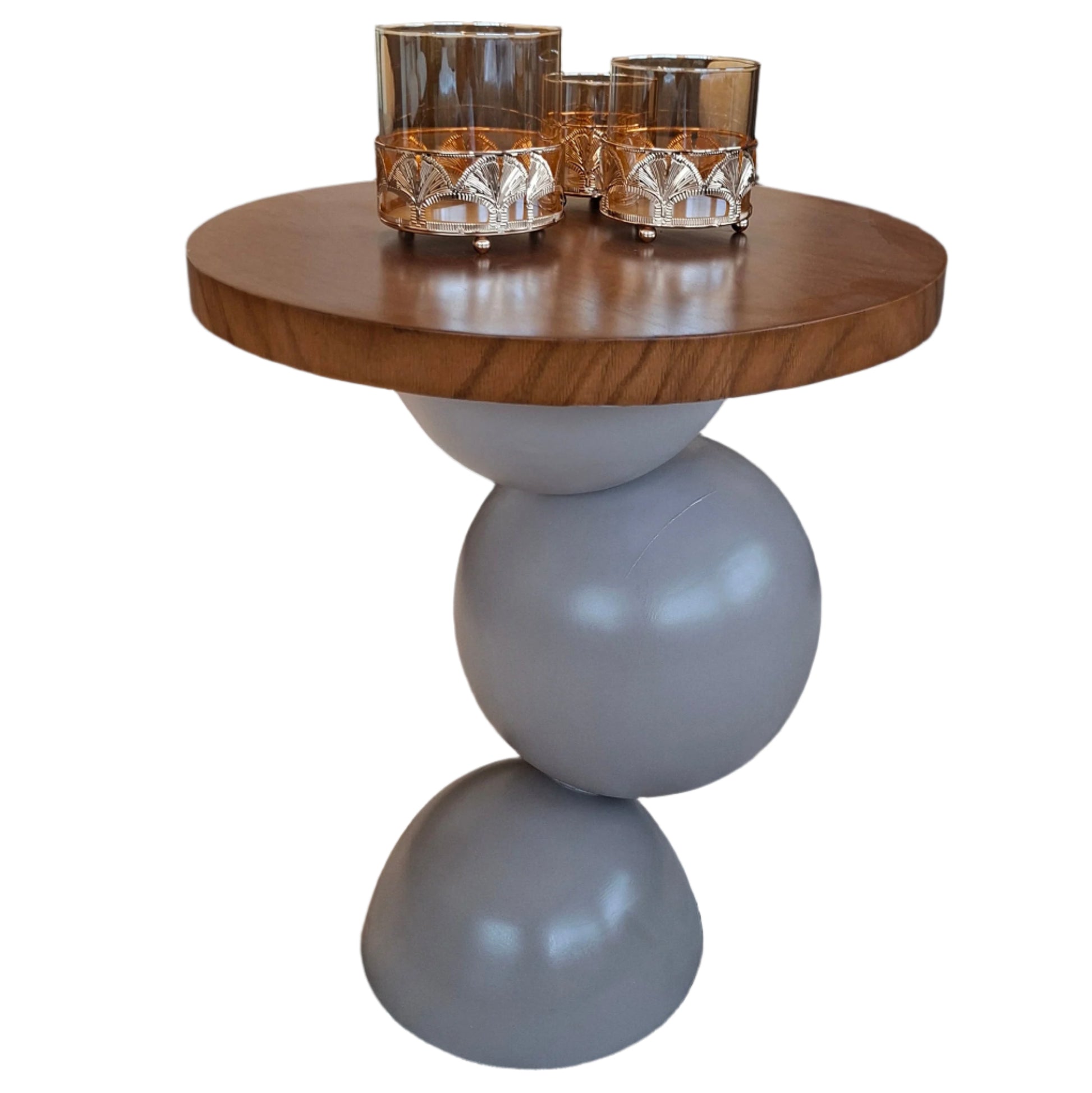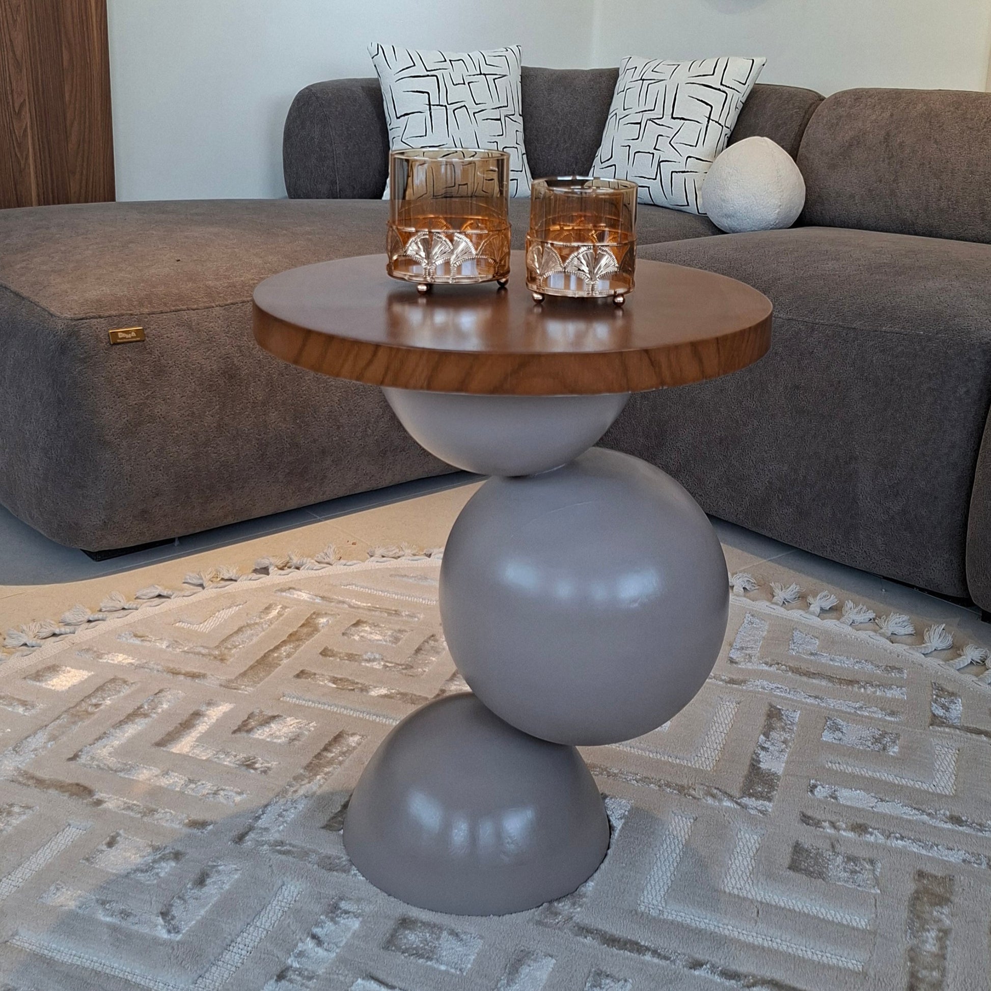 - تصميم فني بثلاث كرات خشبية تعكس التوازن والتناغم