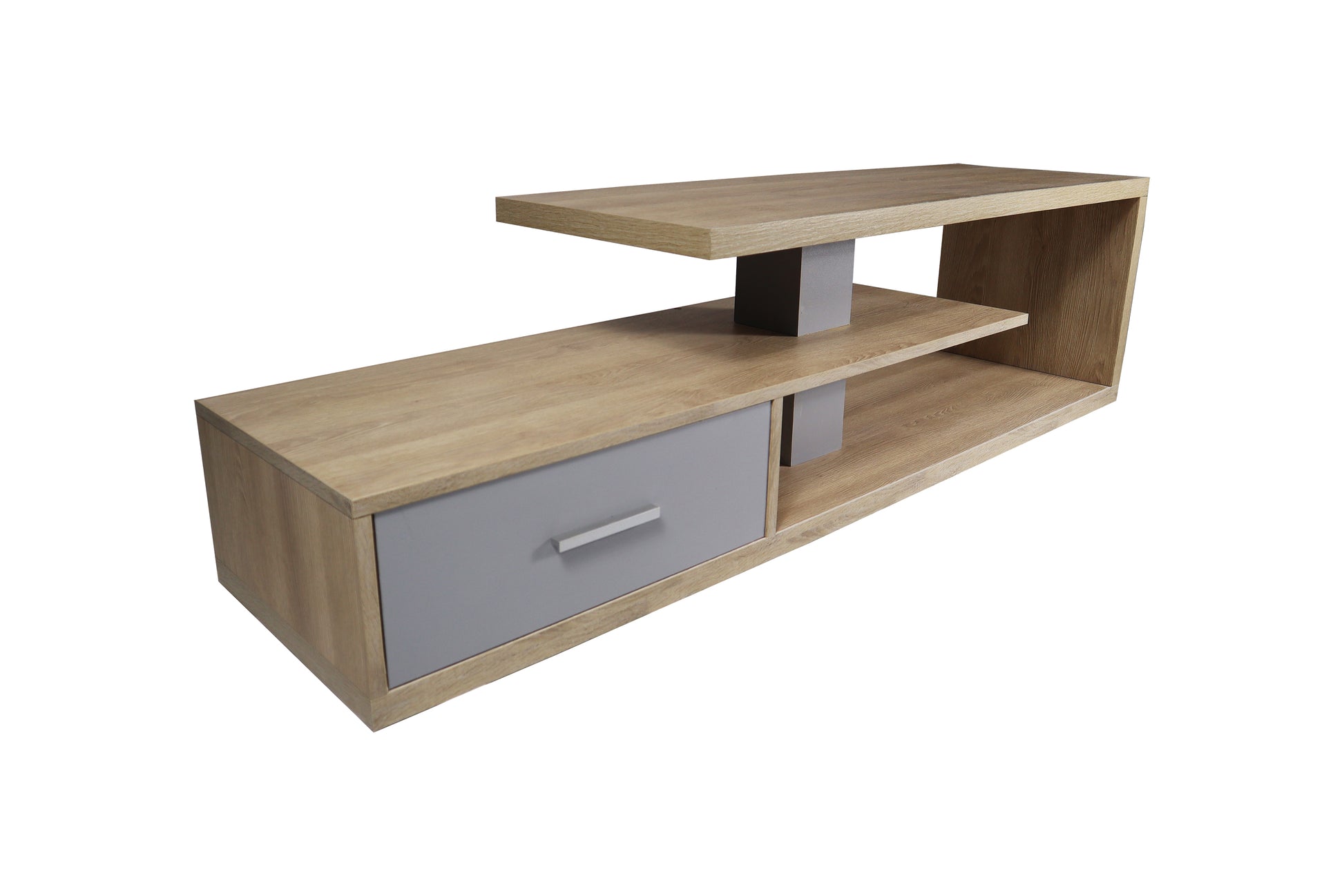 طاولة تلفزيون توفر مساحة عرض واسعة، مزودة بدرج تخزين عملي لحفظ الأغراض وتنظيم المساحة بأناقة عصرية.